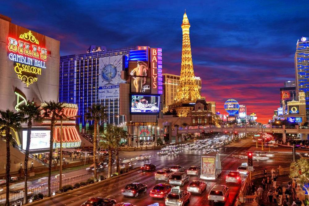 Стріп – головна пам’ятка, де розташовані готелі-казино, такі як Bellagio (з фонтанами), Caesars Palace (в римському стилі) та The Sphere – інноваційна арена з LED-екраном. Казино пропонують ігрові автомати, покер та шоу, включаючи концерти та магічні вистави. Вхід до казино безкоштовний, але азартні ігри потребують віку 21+.